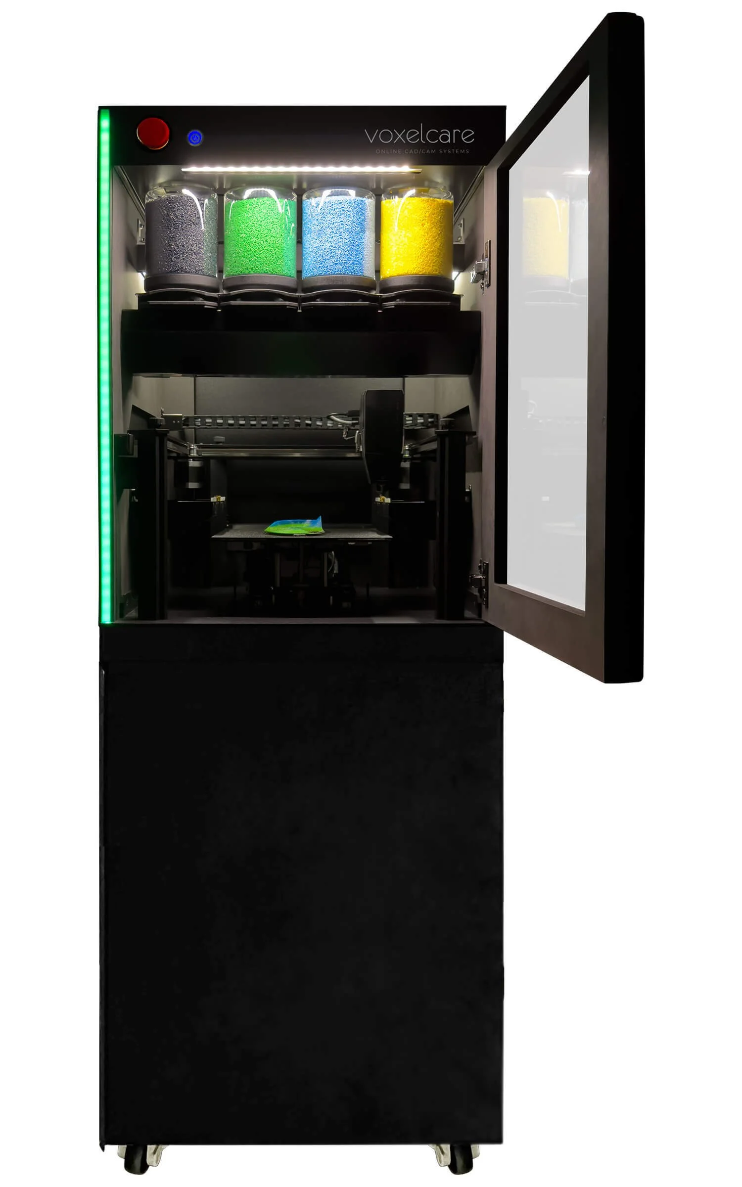 The Voxelcare 3D pellet printer is a next-generation additive manufacturing device designed specifically for podiatric clinics. It uses pelletized thermoplastic material to create strong, flexible, and lightweight orthotics customized for each patient. Its precise control over infill density and layering ensures the orthotic offers optimal support while maintaining comfort.